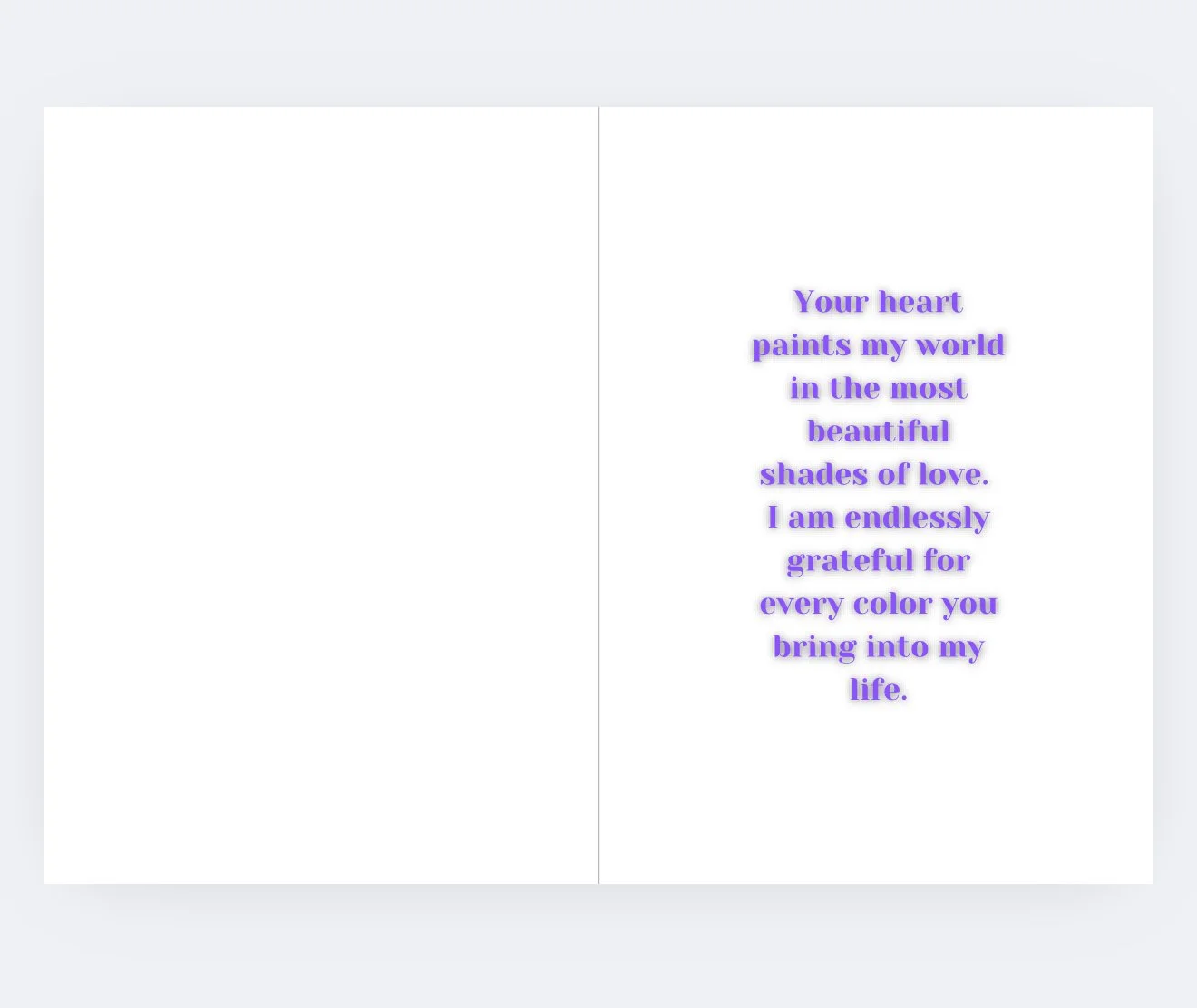 π Inside Message: Your heart paints my world in the most beautiful shades of love. I am endlessly grateful for every color you bring into my life.