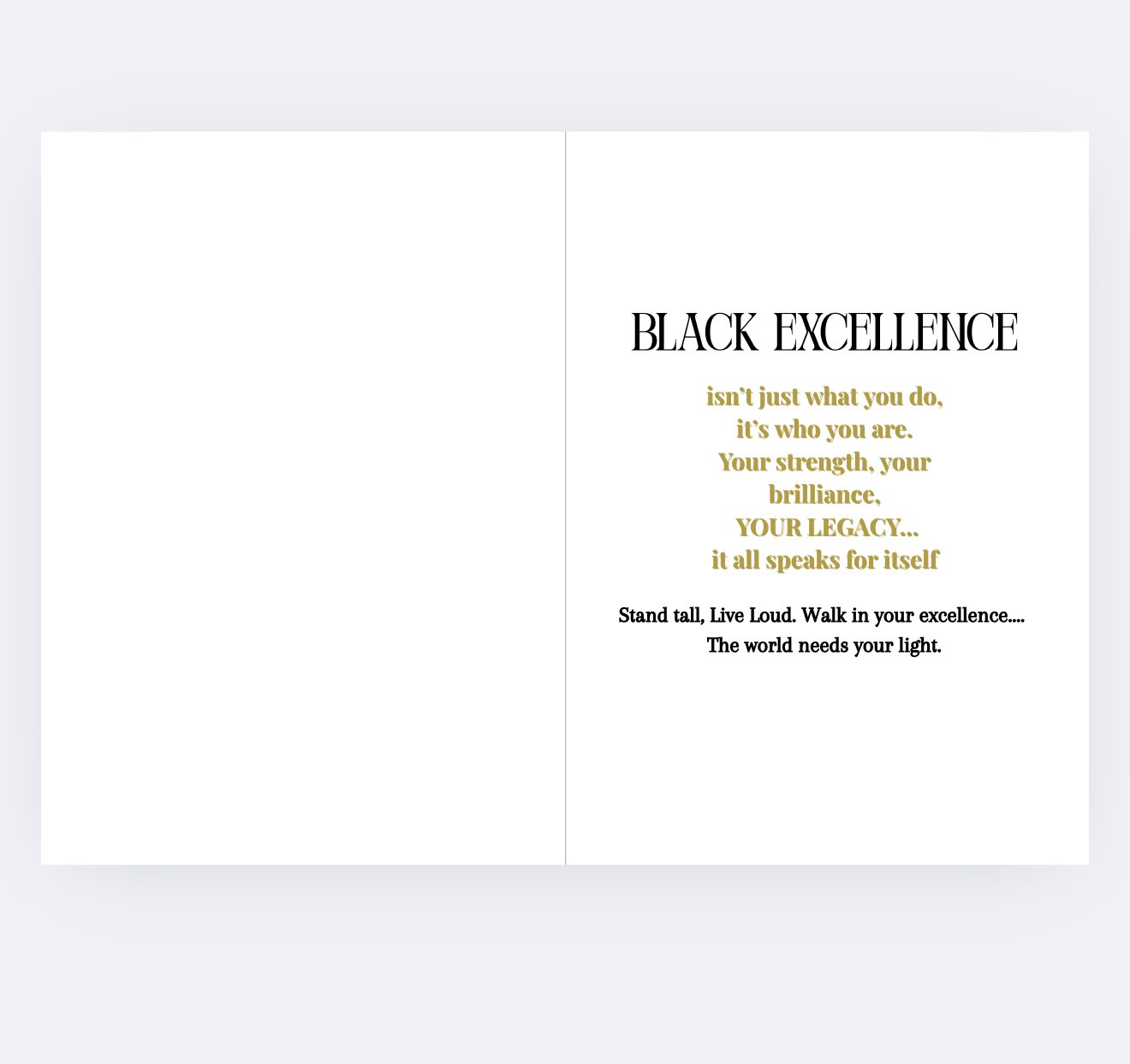 Celebrate the brilliance, strength, and legacy of Black Excellence with this powerful greeting card.